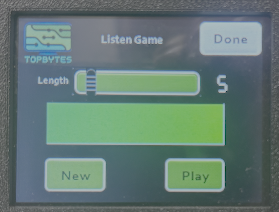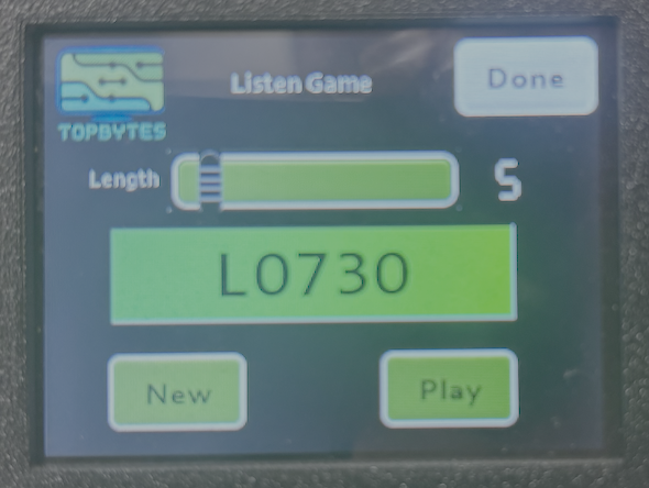 When a custom practice word list is configured via the web interface, the Listen game picks random words from your custom text instead of generating random character strings. The word length slider is hidden as it is not relevant in this mode.